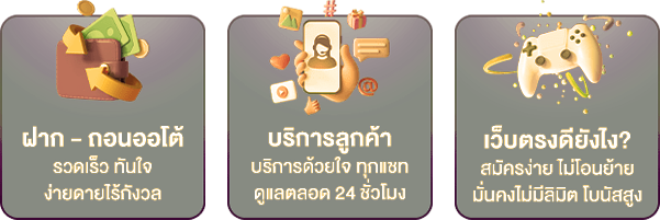 ตอบ : มีระบบฝาก-ถอนอัตโนมัติรวดเร็ว ให้บริการเกมพนันครบวงจร มีโปรโมชั่นแรกเข้า 100% และมีทีมซัพพอร์ตตลอด 24 ชั่วโมง