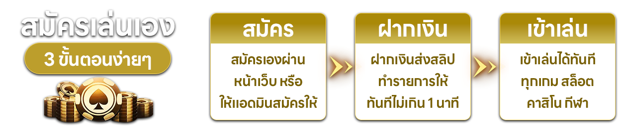 เมื่อสมัครสมาชิกเสร็จแล้ว คุณสามารถเริ่มต้นเดิมพันได้ทันทีด้วยการฝากเงินเข้าระบบ ซึ่งรองรับการโอนผ่านธนาคารชั้นนำทุกธนาคาร และระบบวอลเล็ทอย่าง true money wallet ที่สะดวกรวดเร็ว ยอดเงินจะเข้าบัญชีภายในไม่กี่วินาที